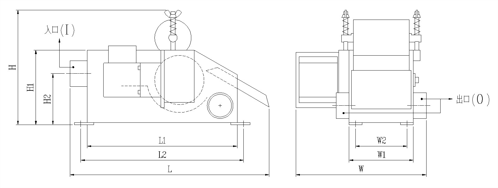 | Model | L/Min* | L | W | H | L1 | W1 | H1 | L2 | W2 | H2 | Inlet | Outlet | Motor |