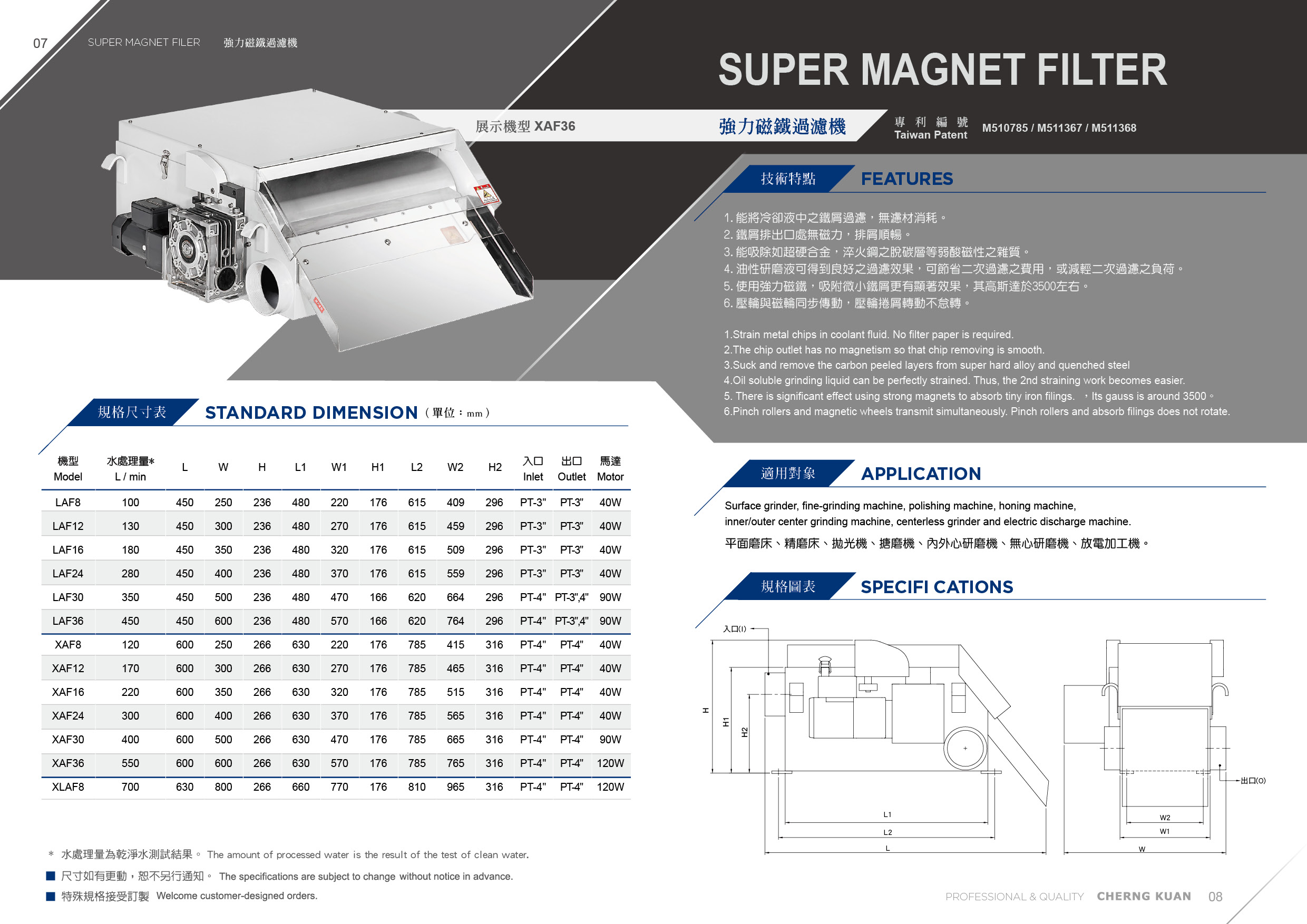 | XAF12 | 170 | 600 | 300 | 266 | 630 | 270 | 176 | 785 | 465 | 316 | PT-4" | PT-4" | 40W |