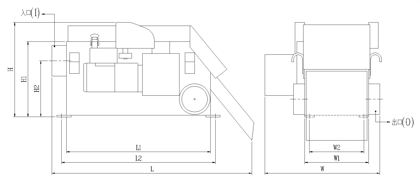 | Model | L/Min* | L | W | H | L1 | W1 | H1 | L2 | W2 | H2 | Inlet | Outlet | Motor |
